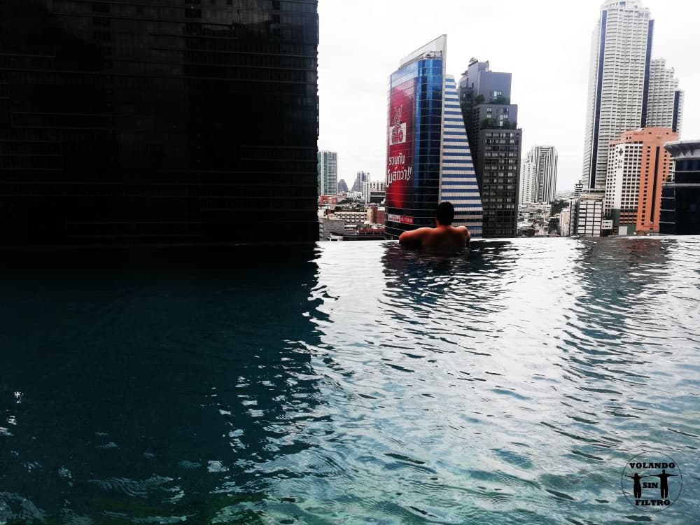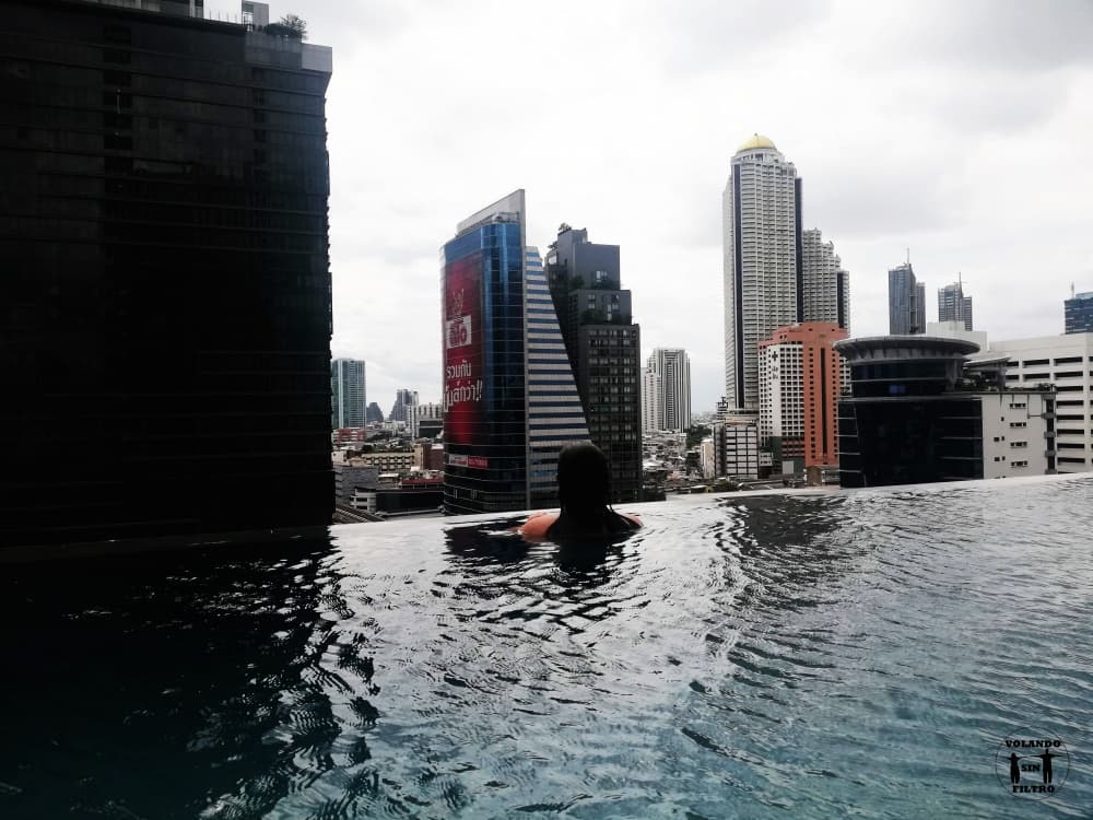 El hotel la verdad es que está muy bien. La habitación en la que estuvimos estaba en la planta 22 y tenía unas vistas muy chulas, además, era bastante amplia y estaba impecable. La piscina es una bonita infinity pool que viene genial para descansar de la humedad y de los aires de Bangkok.