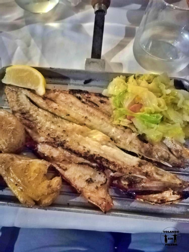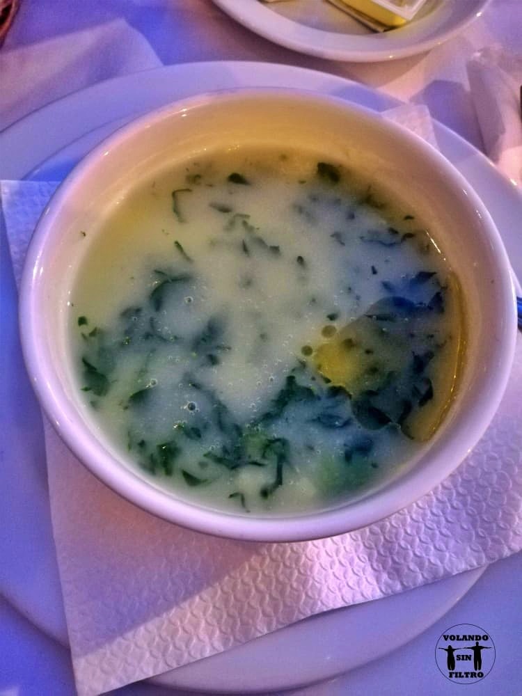 En nuestro caso probamos de primero el caldo verde, un plato muy típico de Portugal que nos recordó un poco a nuestro caldo gallego, la verdad es que estaba bueno. De segundo probamos una lubina a la brasa que estaba increíble, en su punto, y un arroz con rape y langostinos que nos pareció que estaba bastante bueno, la única pega es que tenía bastante cilantro. De postre tomamos una tarta que estaba rica pero que no recomendaríamos. Creemos que es un sitio con una buena relación calidad-precio.