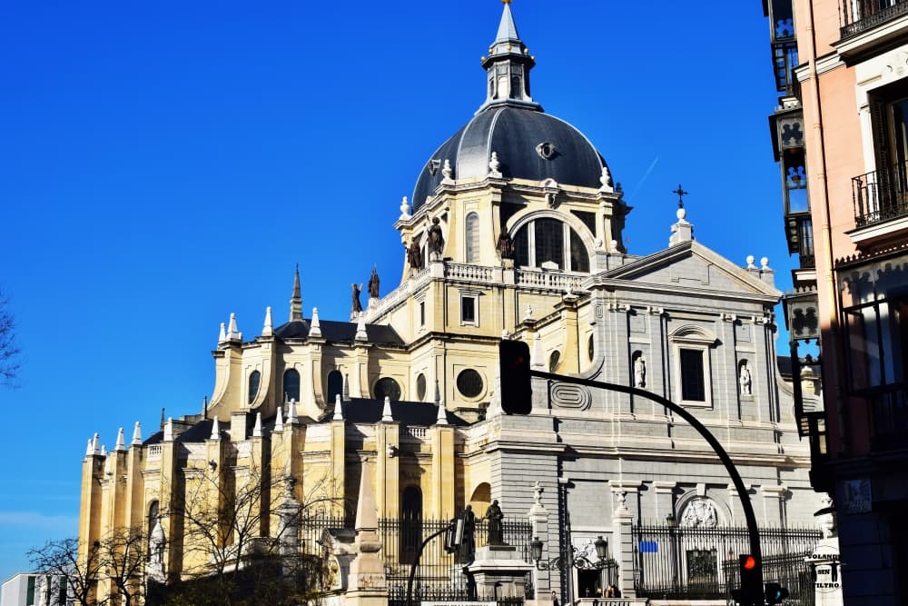 Vamos a empezar con la Catedral de la Almudena, uno de los sitios más famosos de Madrid. En principio iba a ser una iglesia pero acabo rediseñándose para ser una catedral. Pertenece al Madrid de los Austrias y en ella se celebró la boda de los actuales Reyes de España, Felipe y Letizia.