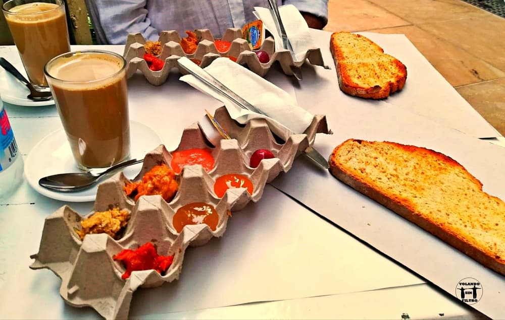 Este es uno de los mejores sitios para desayunar en Málaga sin ninguna duda. Fuimos a probarlo por las opiniones que habíamos visto en Internet y no nos arrepentimos. El desayuno consta de: café, tostadas y diferentes opciones para echar en la tostada (sobrasada, chicharrones, zurrapa, mermelada casera de canela y manzana, mermelada casera de mango, tomate rallado, mantequilla y una uva). Es un sitio que recomendamos totalmente.