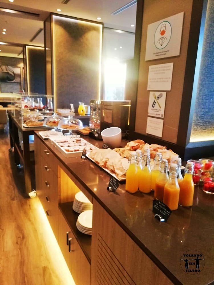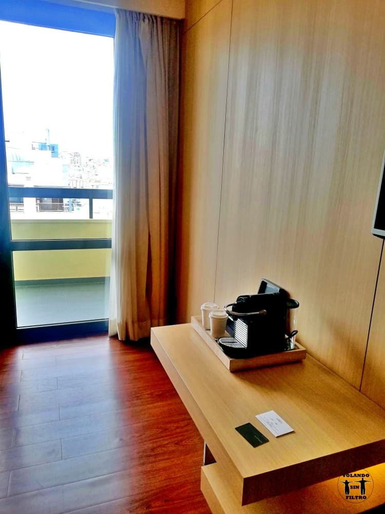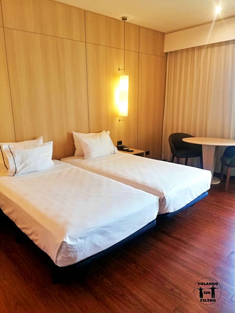 Cuando llegamos al hotel nos hicieron un upgrade de habitación y nos alojamos en una habitación doble con balcón. A la limpieza le damos un 8 solo por pequeños detalles, la habitación era enorme y la cama muy cómoda. En la misma, como detalle hay una cafetera Nespresso para poder tomarte un café todos los días si quieres. El desayuno nos gustó mucho, tenía todo tipo de opciones dulces (tortitas, bizcochos, tostadas…) y saladas (huevos, bacón, embutido…).