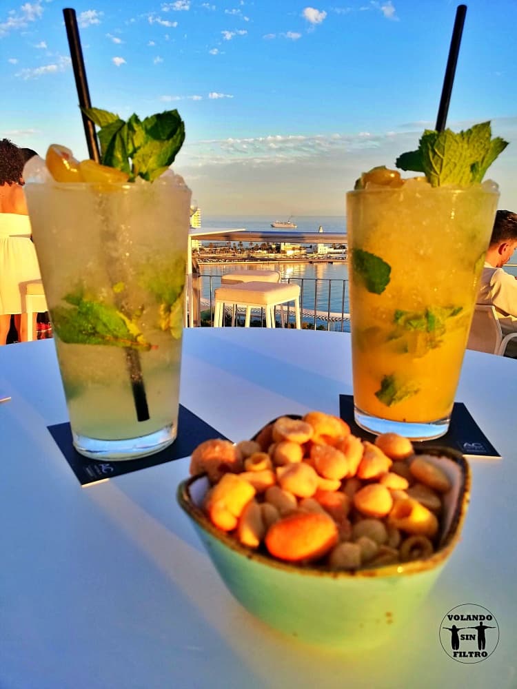 El rooftop es lo mejor del hotel, pudimos disfrutar de la piscina los dos días y hasta uno de ellos nos tomamos un mojito viendo el atardecer, para nosotros este es uno de los mejores alojamientos de Málaga. Las vistas de las que puedes disfrutar hacen que la estancia sea mucho mejor, el precio en habitación doble con desayuno ronda los 110 €.