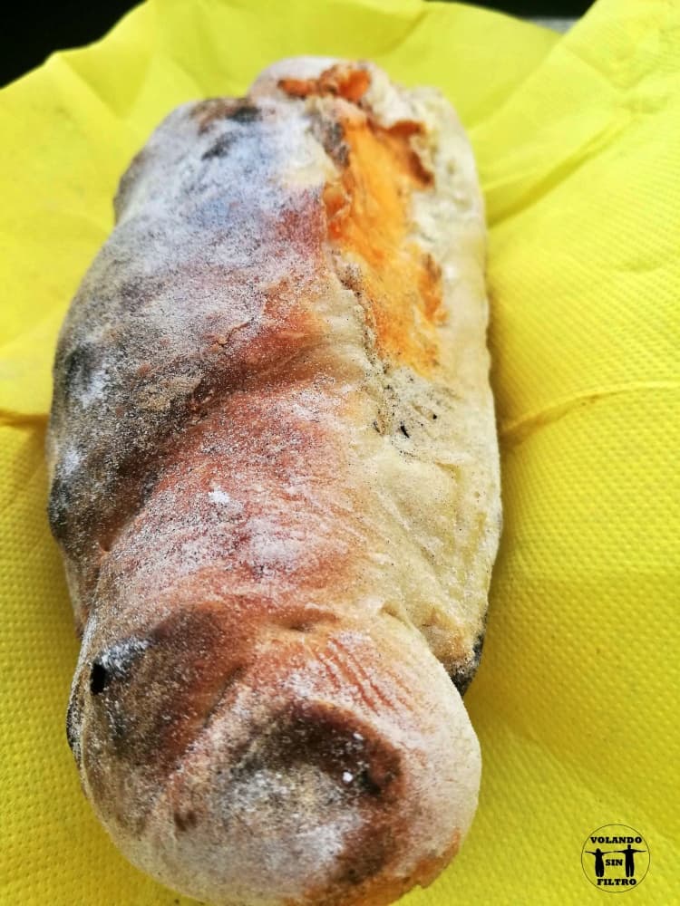 Encontramos este lugar en Internet, es un horno de pan que la verdad es que por dentro está bastante chulo, nada más entrar ya te va a venir el olor a pan recién hecho. Probamos un bollo relleno de chorizo, nos decepcionó cuando vimos que era en lonchas (culpa nuestra esperarnos un bollo preñado) pero después de la decepción inicial nos gustó bastante, estaba calentito y muy sabroso.