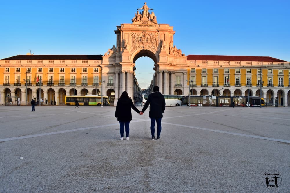 Esta plaza se construyó en el sitio del Palacio Real cuando el Gran Terremoto de 1755 lo destruyó. Durante muchos años fue la puerta a la capital lusa del comercio que llegaba por el mar y hoy en día es la plaza más importante de la ciudad. Nosotros tuvimos la suerte de alojarnos muy cerca de ella y pudimos visitarla a distintas horas del día, te aconsejamos verla de noche y de día ya que es uno de los mejores sitios que ver en Lisboa.