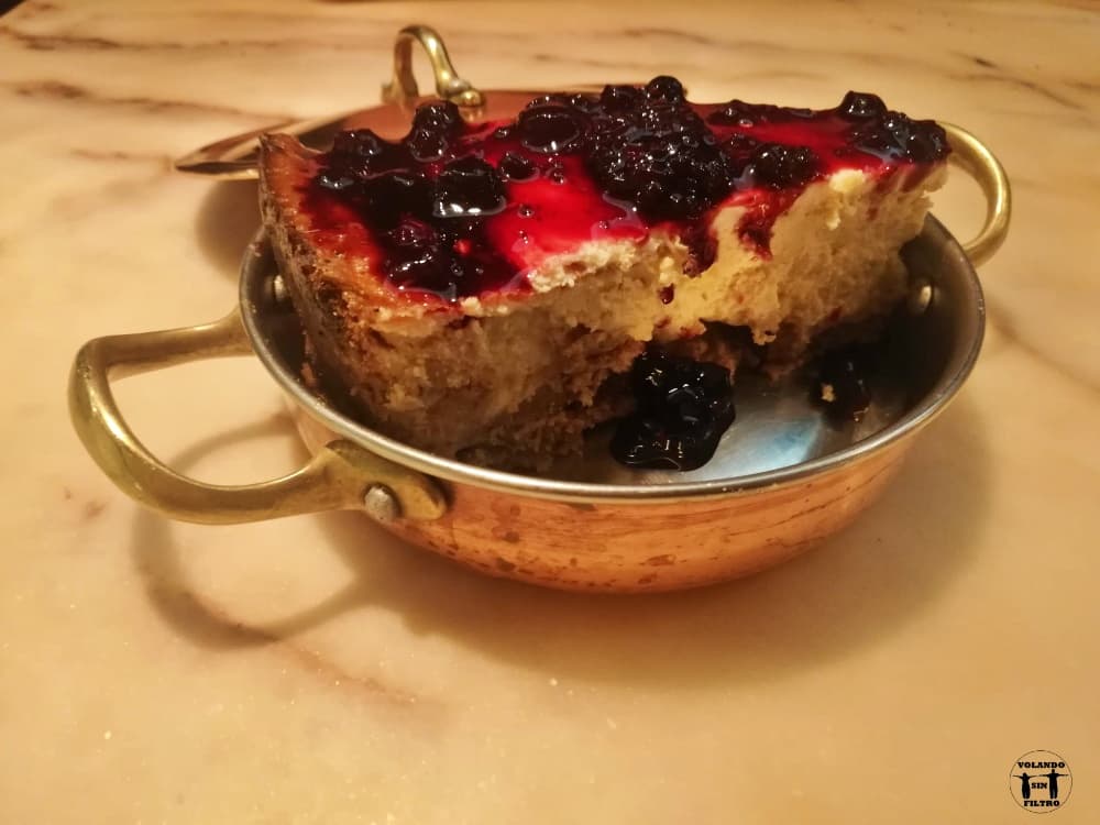 Pedimos una hamburguesa cada uno, la carne estaba impresionante en su punto y los demás ingredientes estaban en la proporción perfecta. Las hamburguesas vienen acompañadas de patatas y una mahonesa casera que nos podríamos haber comido a cucharadas. De postre optamos por el cheesecake y estaba buenísimo también.