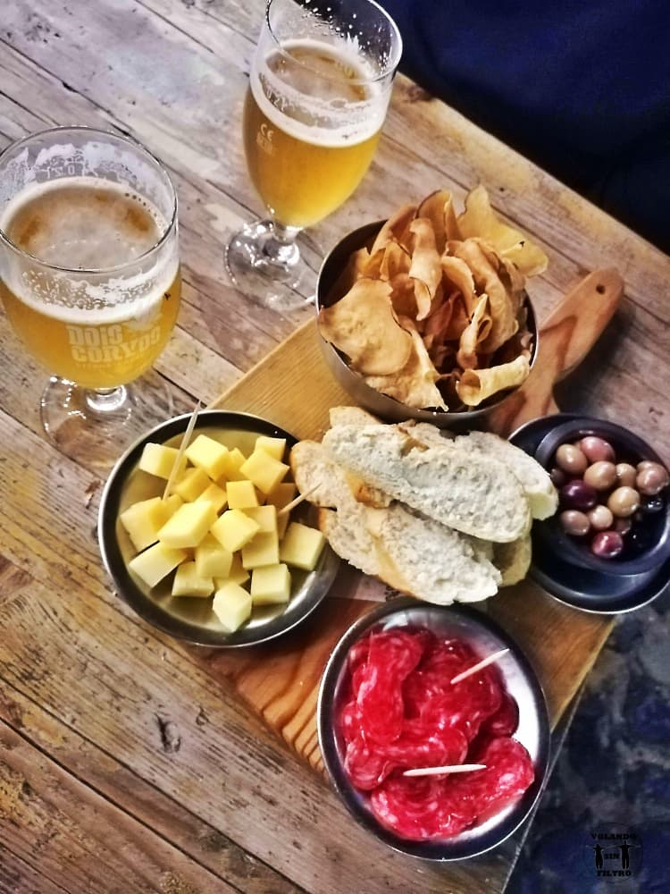Un buen sitio para picar algo en Lisboa también en el LX Factory, tiene una terraza muy guay y está en la calle principal del mercado. Pedimos una tabla que traía: aceitunas, fuet, queso, chips de batata y pan. Nos gustó mucho para acompañar la cerveza y fue más grande de lo que nosotros pensábamos. Eso sí, como buenos amantes de la cerveza que somos, la de este lugar nos pareció bastante mala.