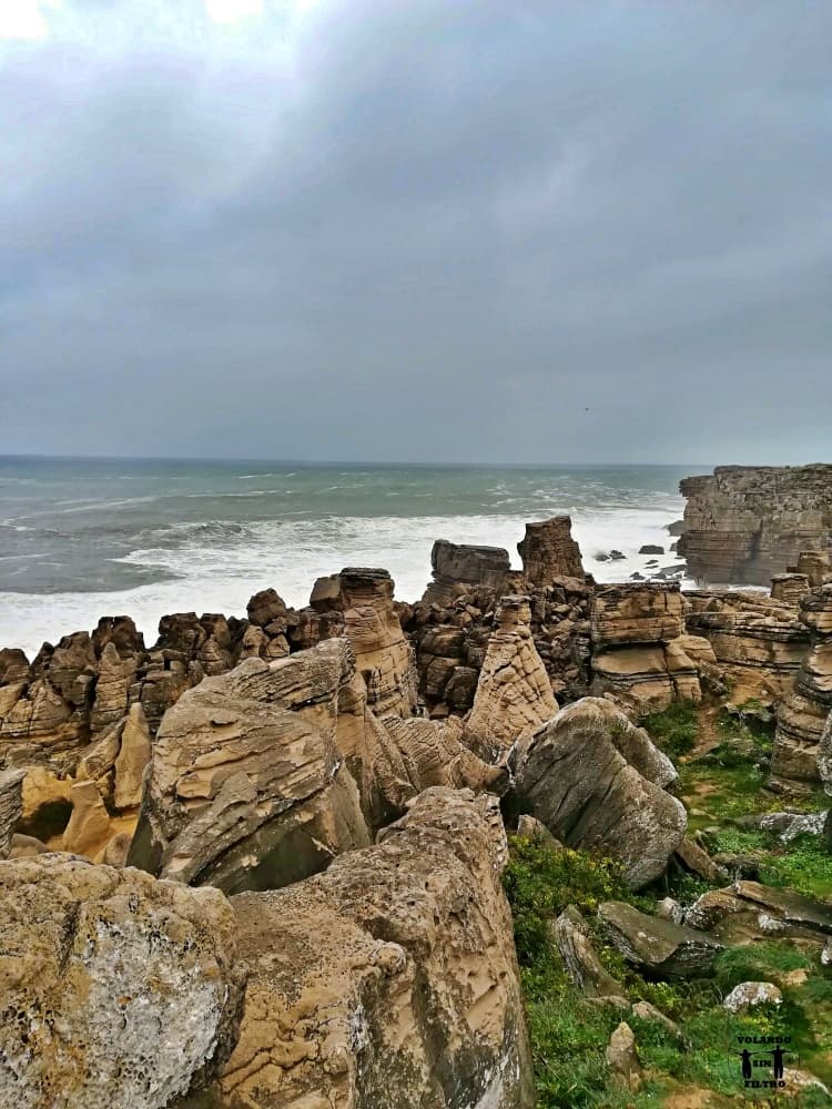Peniche es un pequeño pueblo pesquero de la costa de Portugal con mucho encanto. En él puedes visitar sitios como la playa de Supertubos o la Fortaleza de Peniche, nosotros hicimos un pequeño recorrido en coche porque llovía bastante cuando fuimos. Una de las cosas más llamativas de esta península son unas formas rocosas que parecen (o eso dicen) pancakes y que vas a poder encontrar en muchos sitios.
