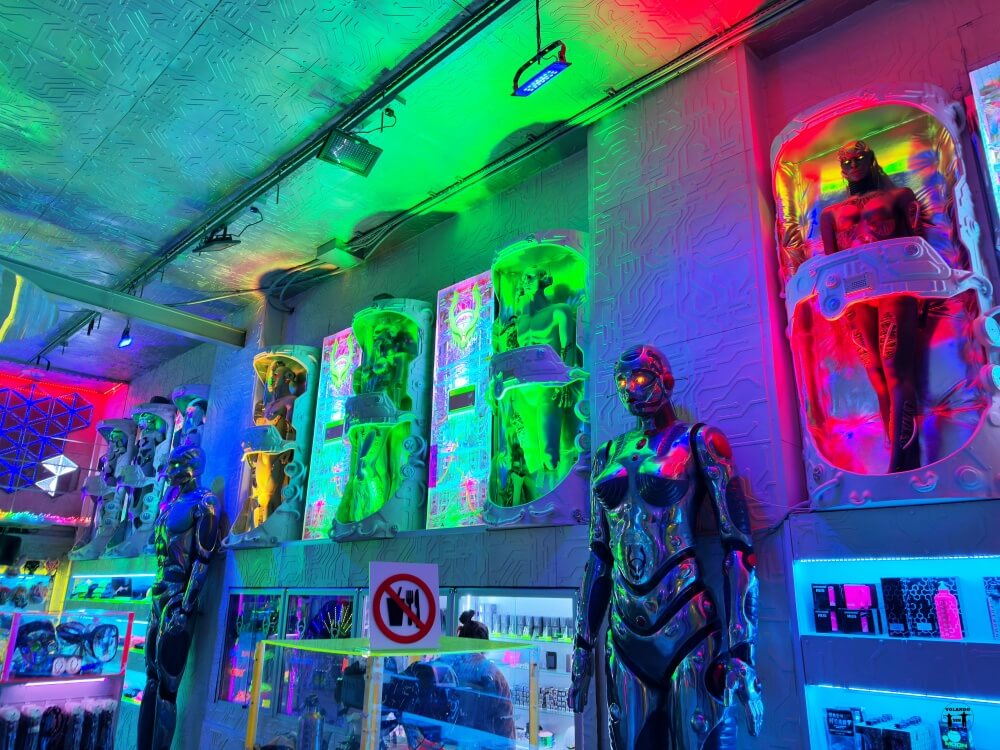 Es un poco complicado describir esta tienda ubicada en Camden Town, podríamos decir que es la tienda más estrambótica y ruidosa de todo Londres. Para que te hagas una idea, en el interior de Cyberdog te vas a encontrar: mucho neón, música electrónica y bailarines profesionales. No es una tienda tradicional de ropa pero sí que es algo muy interesante de ver. Es una pasada ver toda la decoración y como el juego de luces te hace creer que estás en todos lados menos en una tienda. Si te apetece conocer Camden más a fondo puedes reservar este tour.