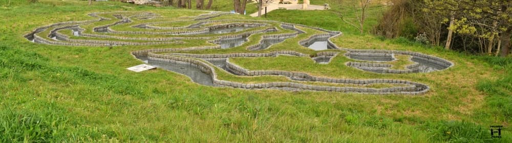 Este laberinto de agua está basado en una obra de arte abstracto de Tim Behrens, representa la batalla encarnizada en la que Hércules consiguió decapitar al gigante Gerión. La leyenda cuenta que en este mismo lugar está enterrada la cabeza del gigante, y que Hércules en honor a Zeus hizo una hoguera que dio origen a la Torre.