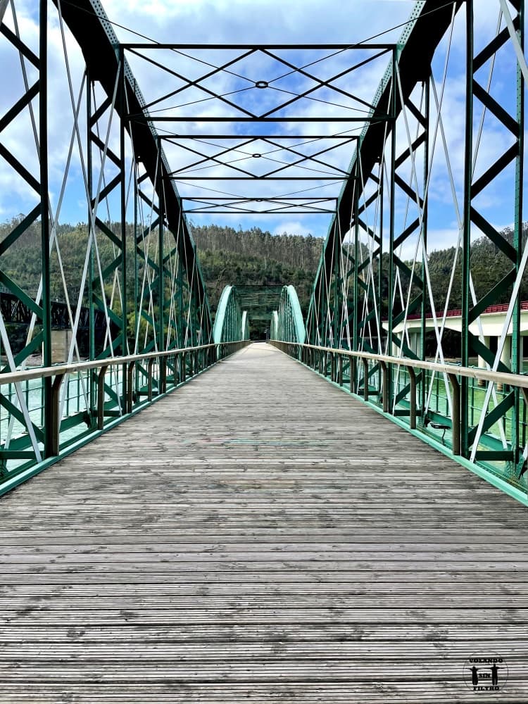 En este recorrido vas a pasar por uno de los tres puentes que cruza la ría do Barqueiro. Esta zona nos encantó y nos pareció de lo más original. Vas a pasear por el que fue el primer puente que hubo en la ría para poder comunicar la comarca de Viveiro con la de O Vicedo. Se terminó de construir en 1901 y su color verde lo hace muy fotografiable, lo mejor, es que solo es peatonal.