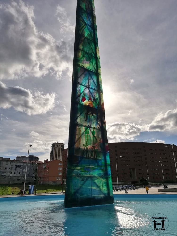 Con 50 metros de altura esta figura está realizada con acero y cristales de roca. Lo más curioso es que en sus primeros 13 metros puedes ver imágenes que representan la historia y los personajes más importantes de la ciudad. Es mucho más impresionante los días de sol, ya que se cuela por los cristales y crea efectos de luces muy chulos.