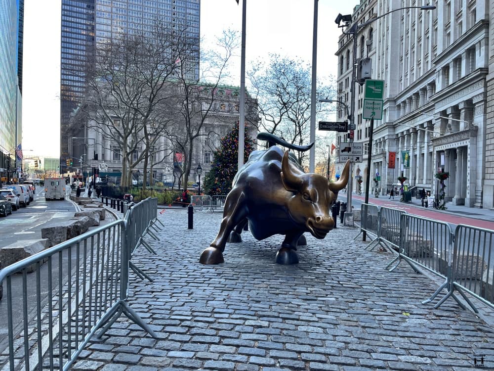 Es una de las fotografías más famosas del Downtown. La Niña sin miedo está justo enfrente de la bolsa plantándole cara al machismo en los puestos ejecutivos. Fue una iniciativa de Streeet Global Advisors por el Día de la Mujer, esta empresa quiso crear un símbolo después de que un estudio en 2017 demostrase que cuando hay mujeres en los puestos directivos las compañías funcionan mejor. Al principio la colocaron enfrente del Toro, pero acabó aquí frente a la Bolsa, las versiones oficiales dicen que molestaba al tráfico, los rumores cuentan que a Di Modica, el escultor del Toro, no le hacía ninguna gracia.