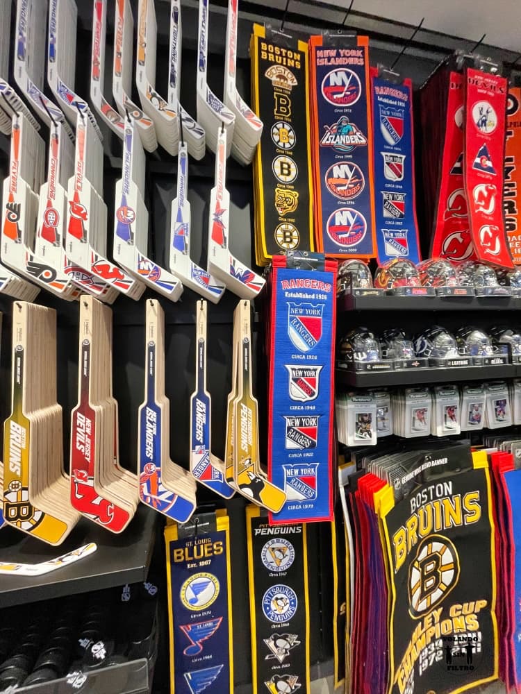 La verdad es que llegamos a esta tienda sin querer, ya que estábamos buscando la de la NFL pero sin embargo nos llevamos una grata sorpresas, está muy chula. Es la única tienda oficial que hay en el mundo y está ubicada en el mismo edificio que el cuartel general de la liga. En ella podrás encontrar todo tipo de sticks de todos los equipos que juegan en Estados Unidos. Hay algunas cosas a precios asequibles si eres fan de este deporte.