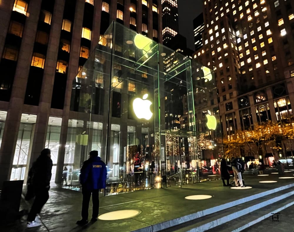 Esta quizás es la tienda de Apple más famosa del mundo, seguro que has visto más de una vez la imagen de su exterior transparente. Se trata de un cubo de unos 9 metros de alto, aunque en un principio querían que fuese de 12. Lo más curioso de esta tienda es que está abierta 24 horas, ¿quieres un iPhone a las 3 de la mañana? Pues si estás en Nueva York puedes ir hasta la 5ª Avenida para comprarlo.