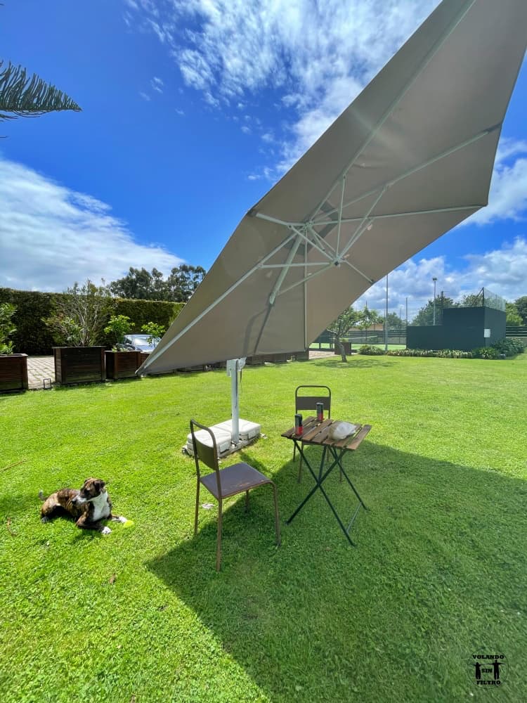 La finca es enorme y lo mejor es que es totalmente tuya aunque alquiles solo el Minihogarín, no hace falta que reserves las dos casas. Por supuesto, es pet friendly y Nala se lo pasó en grande con todo ese jardín para correr. Lo mejor es la parte de fuera, tiene pista de pádel, piscina, barbacoa… vamos, es que tiene hasta un pozo y un hórreo. Si llueve por lo que sea también hay una zona con juegos de mesa y mesa de pin pon.