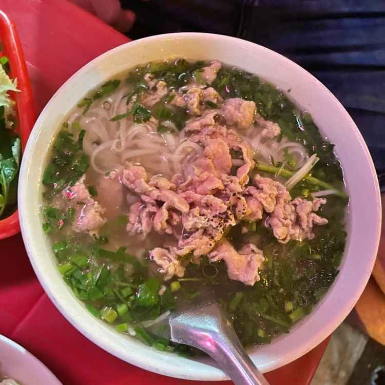 Que guay cuando paras en un sitio por casualidad y aciertas, ¿verdad? Nos sentamos en este restaurante porque nos quedaba muy cerca del alojamiento y porque vimos que estaba lleno de gente local cenando. No tienen muchas opciones, es uno de esos sitios clásicos para probar comida típica en Hanoi. Aquí vas a poder probar pho, el plato más famoso de Vietnam y si te apetece también tienen noodles de arroz. Además, el trato fue muy bueno.