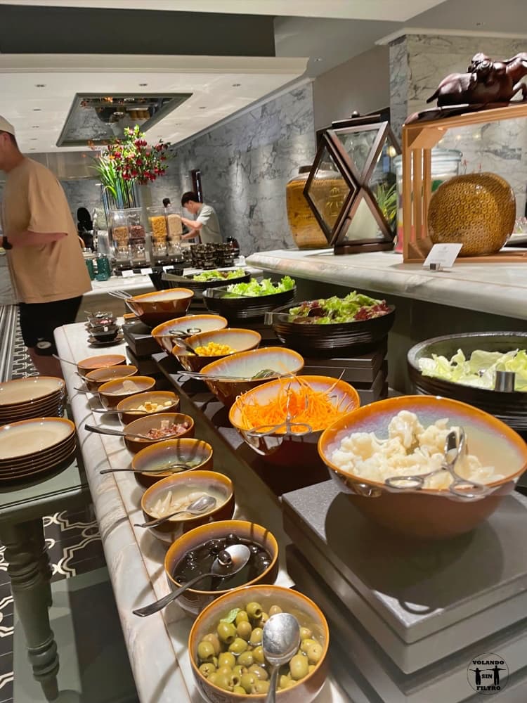 ¿Hay algo mejor que un buen bufet para empezar el día? Por supuesto, el desayuno estaba incluido en el alojamiento y había un montón de opciones para elegir. En la parte salada podías escoger desde un estilo más asiático con sopas, sushi, arroz o tallarines a algo más europeo como huevos, bacon o salchichas. Luego como en todos los hoteles, había cereales y fruta para los más clásicos. Eso sí, la parte de la bollería no nos gustó mucho, pero es verdad que nosotros somos más de salado que de dulce.