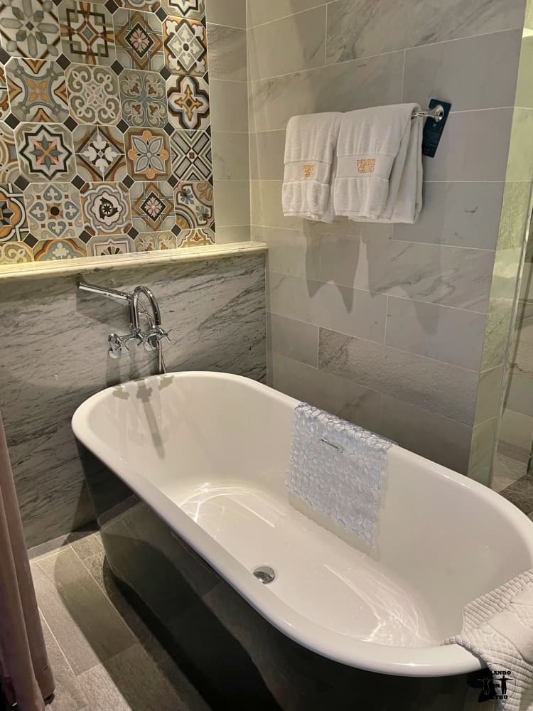 La habitación era la más básica de todas las opciones que tienen. Era bastante amplia y con un baño enorme con bañera, la cama era muy cómoda y no se colaba nada de ruido del exterior. La verdad es que dormimos genial y fue una primera estancia de ensueño.