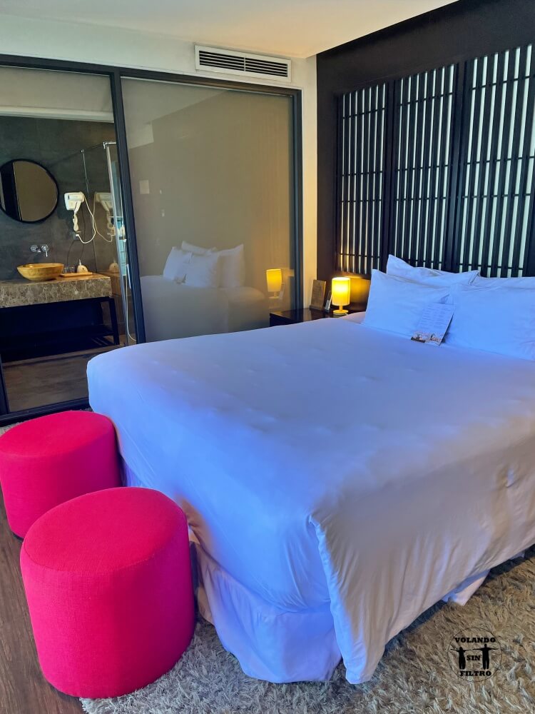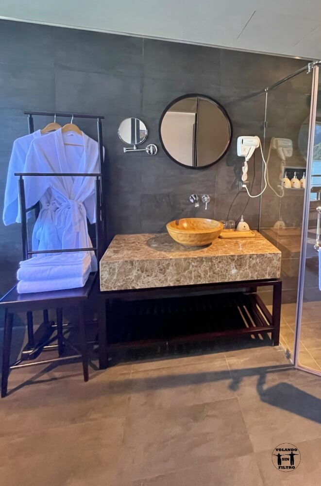 Como hemos dicho, nosotros estuvimos en la Suite Perla Dorada y es una auténtica pasada. La cama es una de las más cómodas en la que hemos estado y además, todo el espacio es enorme. Para nosotros era importante que desde la cama viésemos el exterior y no nos arrepentimos de ello, es una maravilla despertarse viendo estos paisajes.