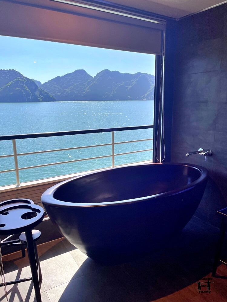 Pagamos por la noche 330 € en la suite Perla Dorada, no te vamos a mentir, encontramos una oferta que aún no sabemos como lo hicimos porque esa habitación no suele bajar de los 600 o 650 €. La noche en la habitación normal (que sigue siendo una pasada) la puedes encontrar por unos 530 €, eso sí, es sin bañera lo que nos parece bastante caro teniendo en cuenta que hay otros barcos más baratos que sí que la tienen. Pero, este es uno de los barcos de lujo de la bahía de Ha Long y por eso los precios son un poco más elevados.