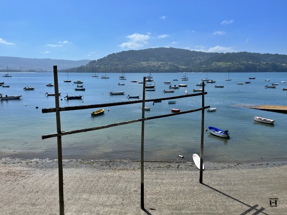 La playa de Area Morta está formada por un arenal pequeño con unas vistas que hacen que te apetezca quedarte a relajarte un rato. En ella, podrás ver las cabrias, las estructuras para secar las redes de las que hablamos antes y las causantes del nombre del pueblo.