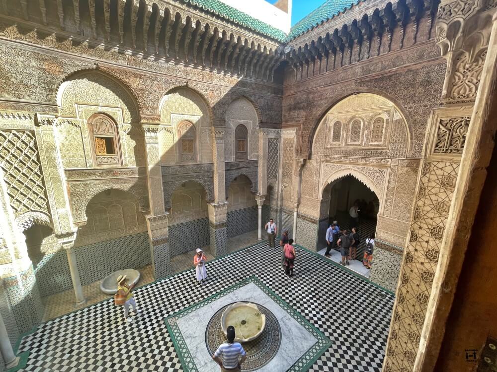 Para ver la ciudad solo tienes que tener un poco de paciencia, ya que la mayoría de sitios turísticos están en la zona peatonal. No puedes dejar de ver el zoco de los caldereros, pero tampoco el de los carpinteros o el de las especias. Además, en nuestra ruta visitamos la Madrasa Al Attarine y nos encantó ver todas las paredes azulejadas y las antiguas habitaciones en las que vivían los estudiantes de la escuelas coránicas.
