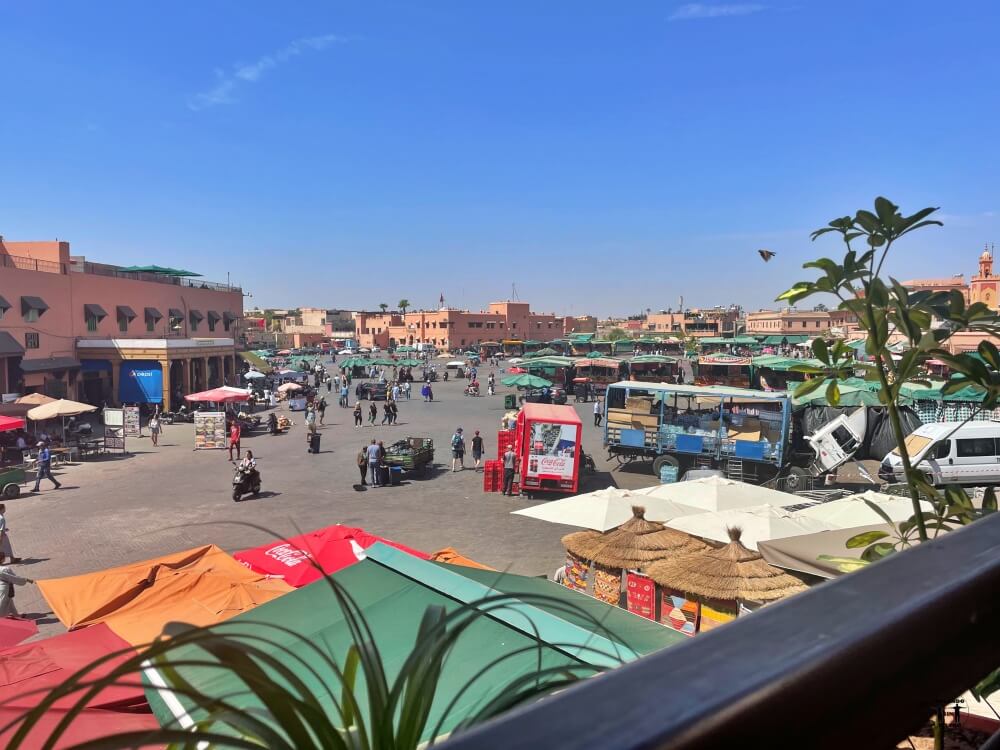 Si quieres comer barato en Marrakech y en plena plaza no hay muchas opciones, pero nosotros probamos una de las pocas en las que no te dejas la mitad del presupuesto del día. El sitio está muy limpio y en la terraza hay ventiladores que hacen que se esté muy a gusto.