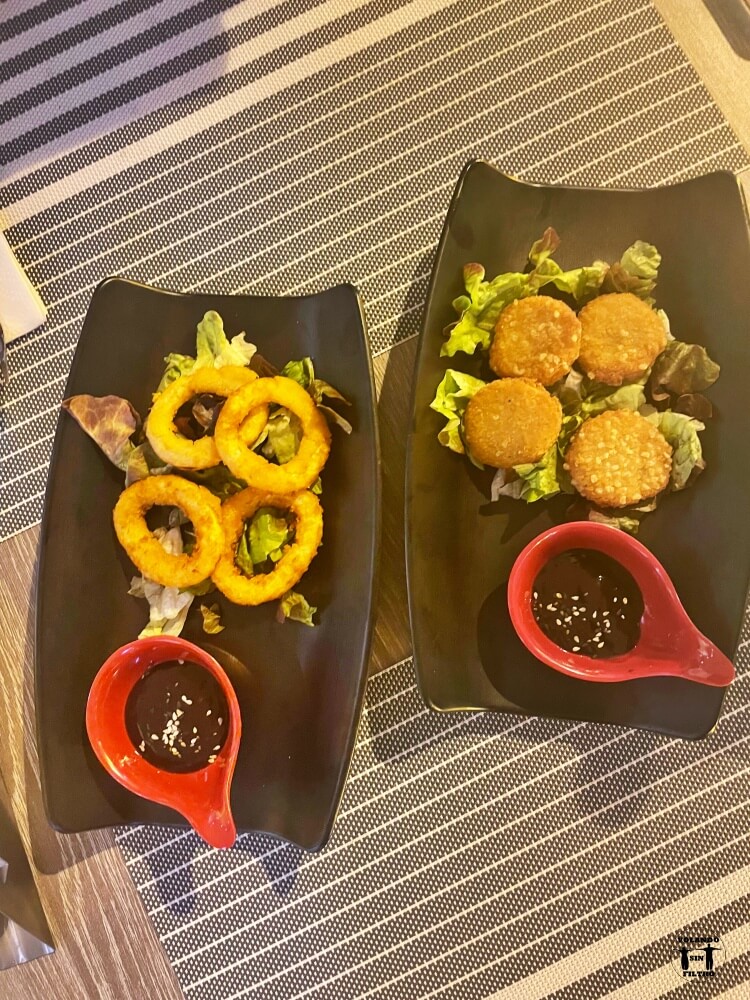 En nuestro caso nos pedimos dos cheeseburgers que venían acompañadas de patatas y ensalada. Estaban muy bien presentadas y muy ricas. Además, nos decidimos por unos aros de cebolla y unos camembert crack, vamos, unos bocados de queso fritos que estaban super ricos. Si te alojas en esta zona o vistas las tumbas puedes comer aquí, tienen unos precios excelentes para la calidad de la comida y el tipo de restaurante.